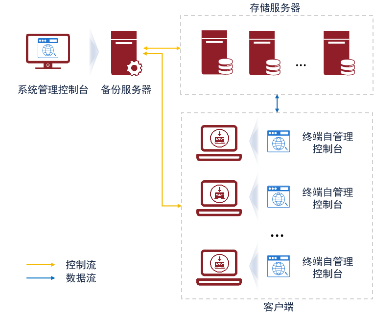 存儲服務(wù)器:負責(zé)存儲備份數(shù)據(jù),可部署一臺或多臺存儲服務(wù)器,也可以與備份服務(wù)器部署在同一設(shè)備上。